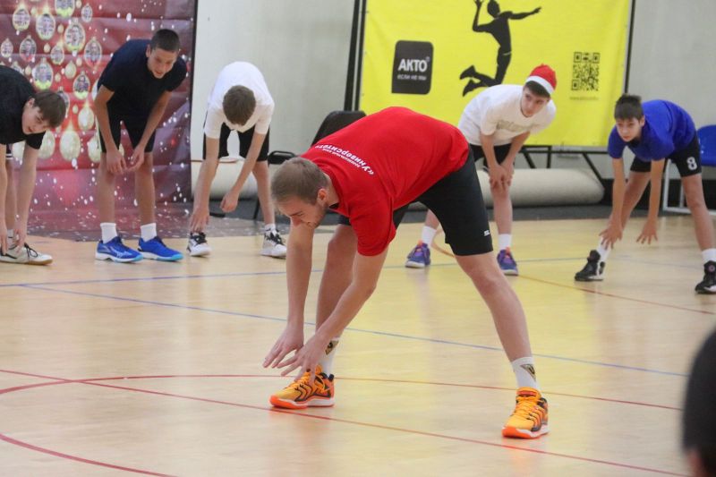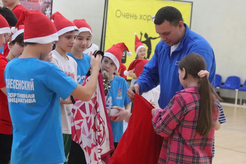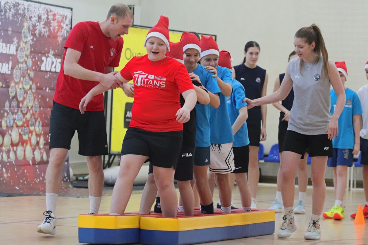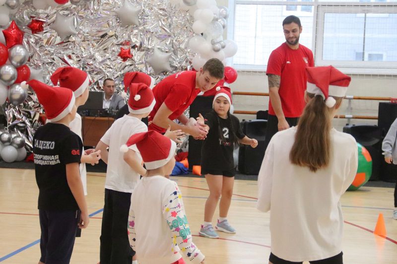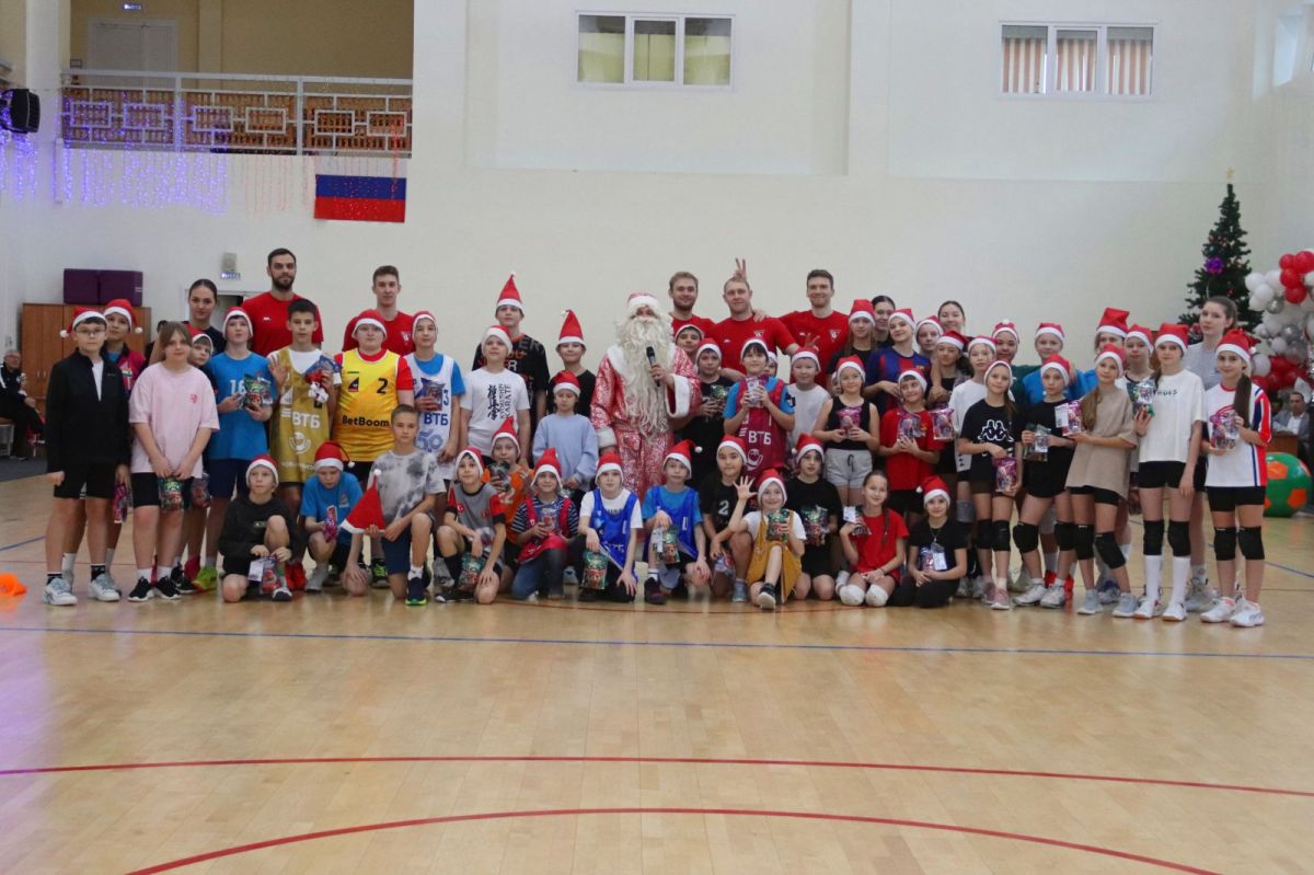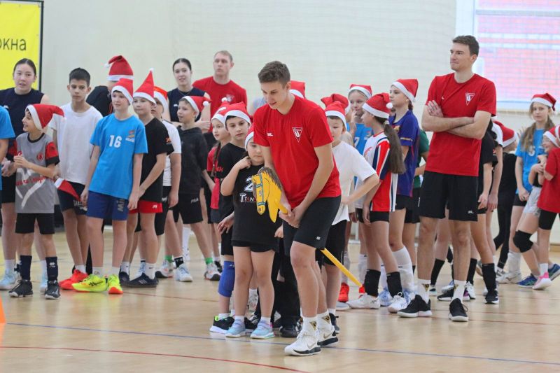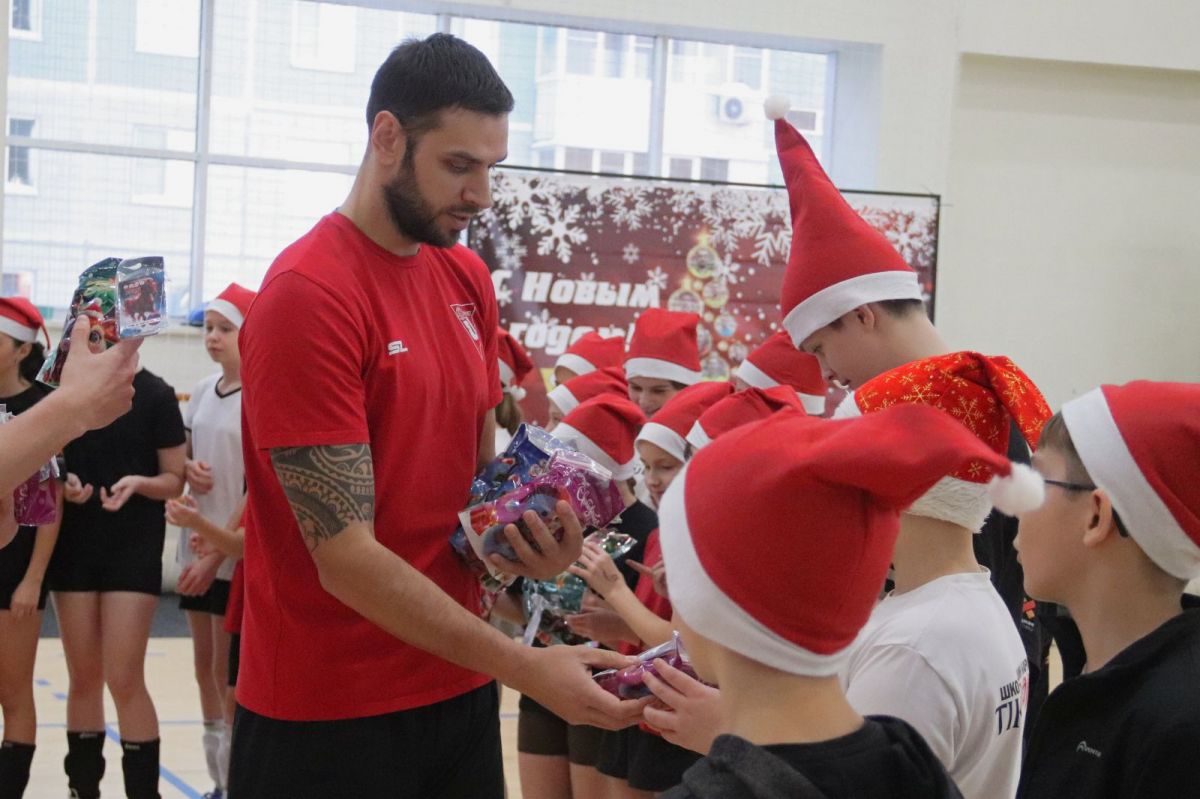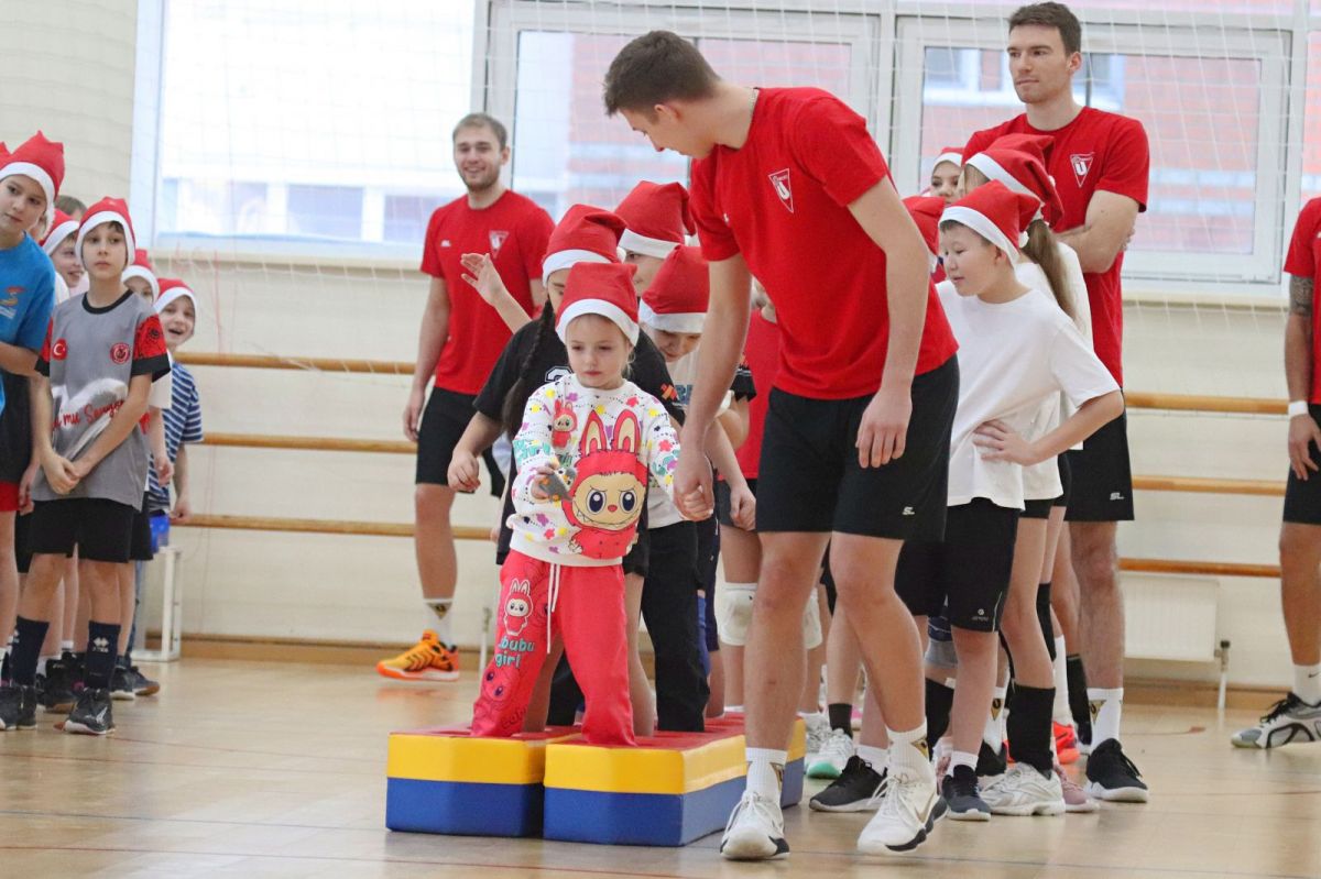 Организаторы наградили участников конкурса «Новогодняя игрушка». Автора канала «Titans Volleyball» Максим Фролов вручил детям игровые майки профессиональных волейболистов.