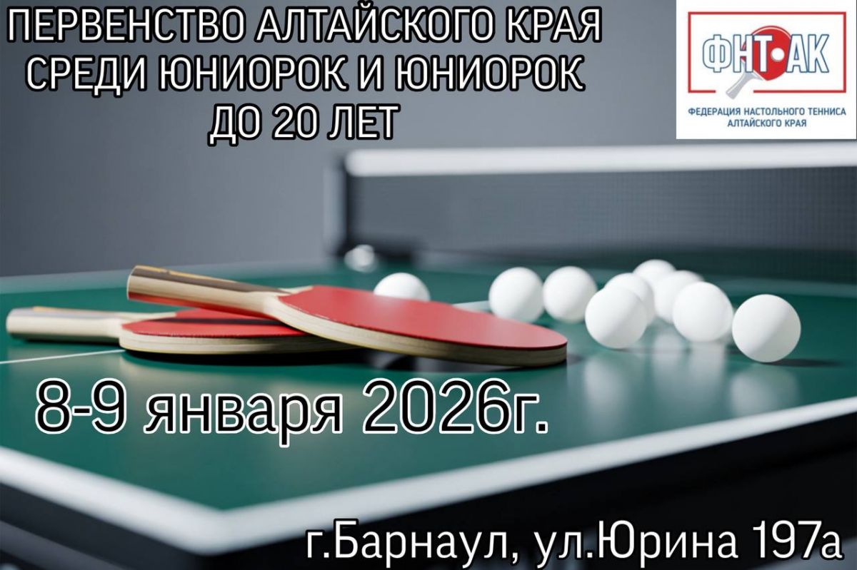 8−9 января в физкультурно-оздоровительном комплексе Краевой СШОР (ул. Юрина, 197-а) пройдет первенство Алтайского края по настольному теннису среди юниоров и юниорок до 20 лет.