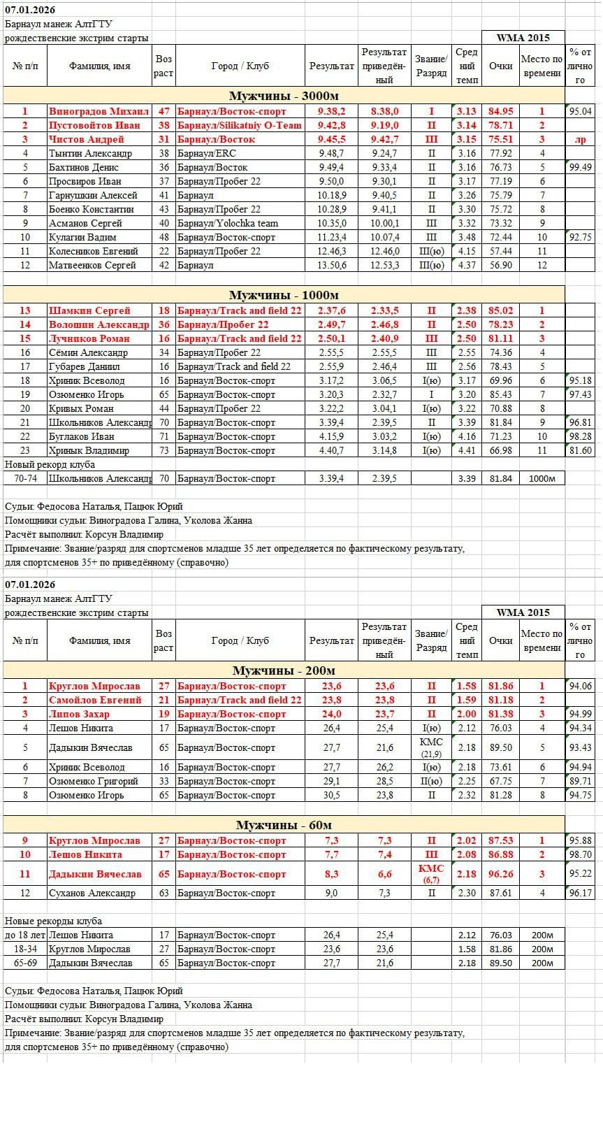 Легкоатлетические соревнования прошли в Барнауле 7 января. В них участвовали не только одноклубники из «Востока - Спорта», но и представители других беговых клубов, в том числе молодые спортсмены - члены сборной Алтайского края.