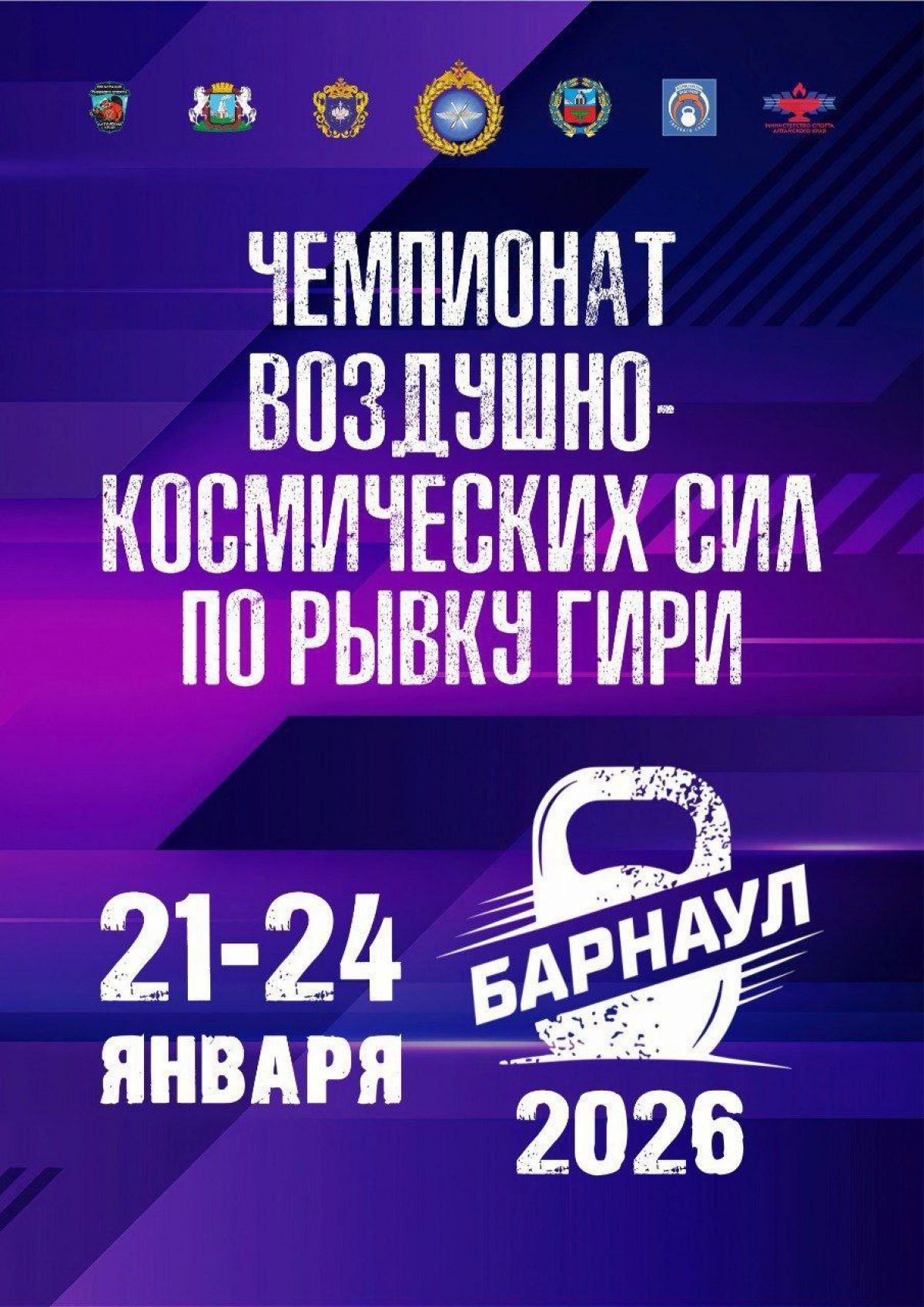 22−23 января в Барнауле в манеже Алтайского государственного технического университета имени И.И. Ползунова (пр. Комсомольский, 69-а) состоится чемпионат Воздушно-космических сил по военно-прикладному спорту (спортивная дисциплина - рывок гири).