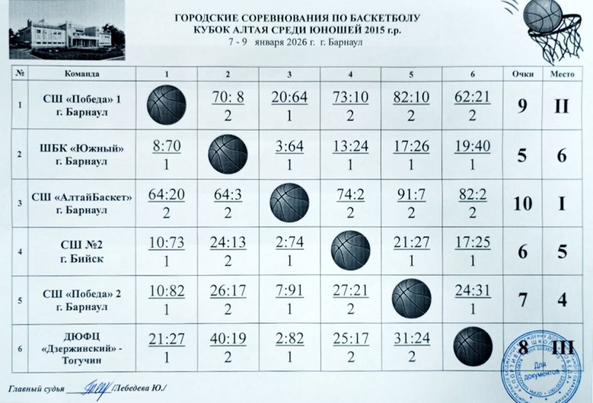 Одержав победы во всех пяти своих матчах, первое место заняла команда краевой спортшколы «АлтайБаскет» (тренер - Сергей Сергеевич Колмаков).