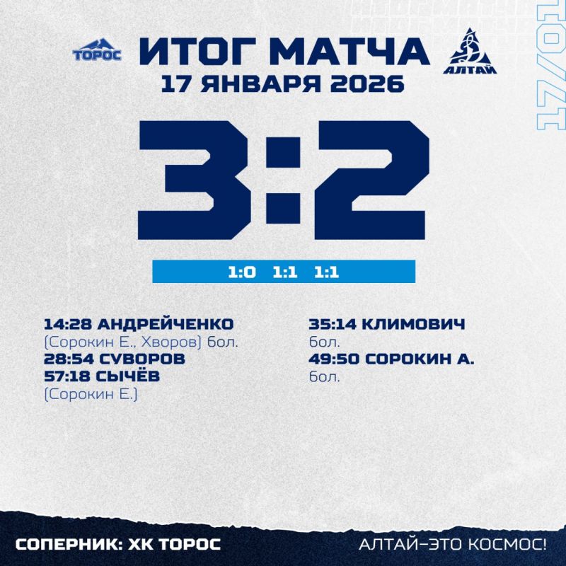 «Торос» (Нефтекамск) - «Динамо-Алтай» (Барнаул) - 3:2 (1:0; 1:1; 1:1). 17 января 2026