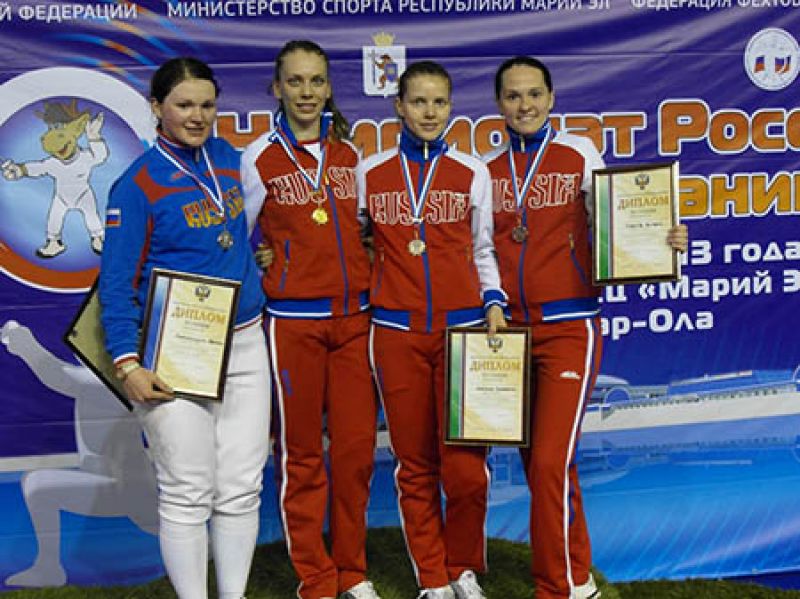 На фото сайта федерации фехтования России: Виктория Ковалёва (крайняя справа) на пьедестале чемпионата России в Йошкар-Оле.