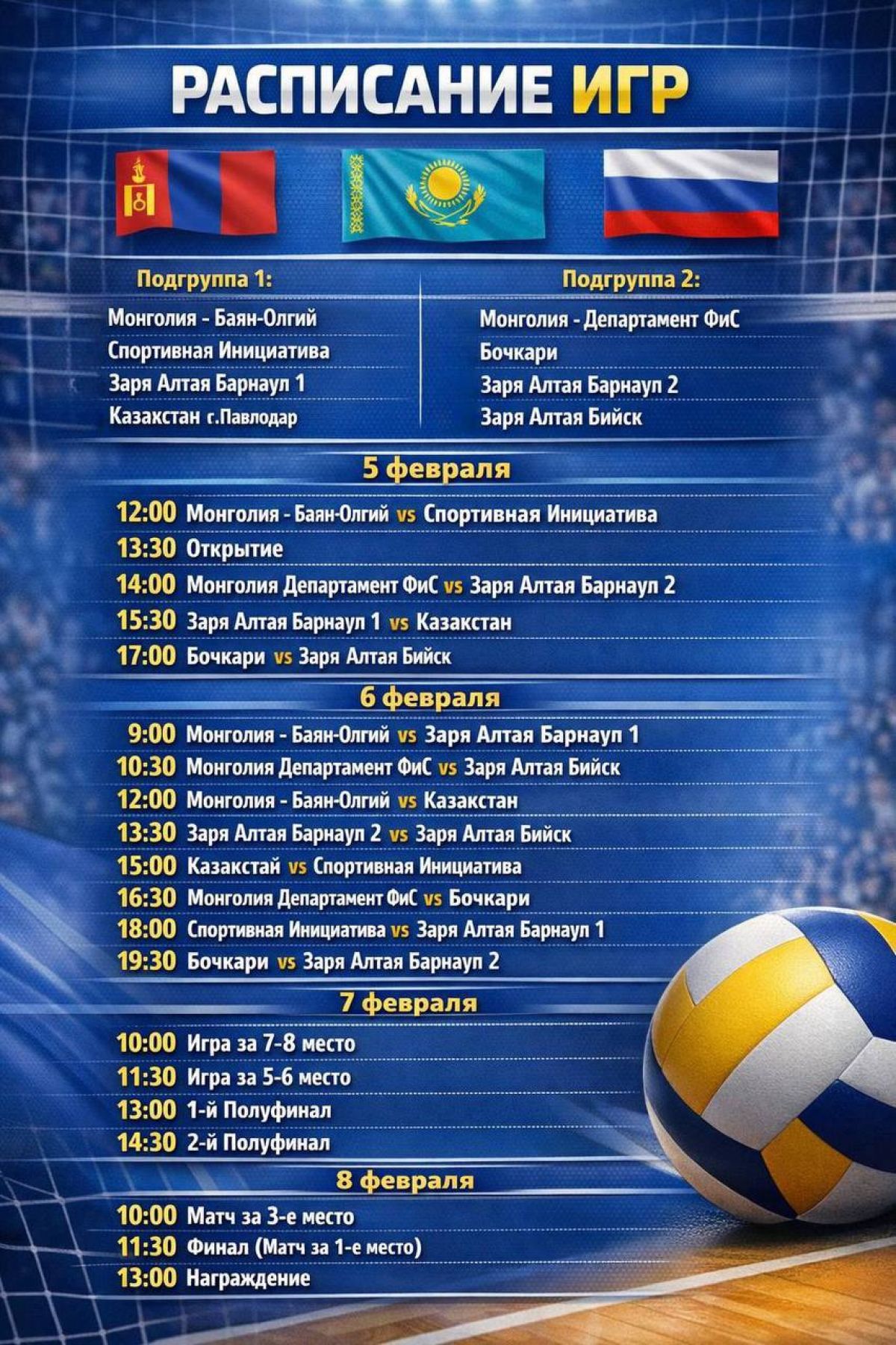 5−8 февраля. Бочкари. СК «Спорт лайф». Международный турнир среди юношей до 16 лет, посвященный Дню рождения волейбола