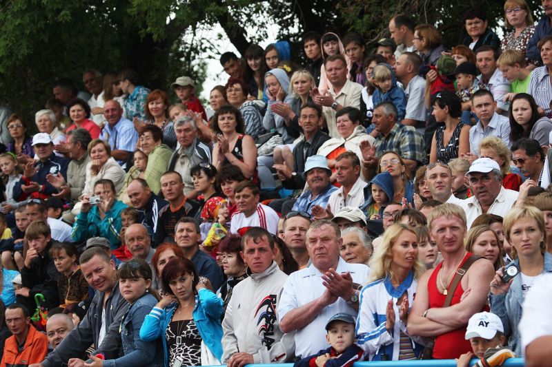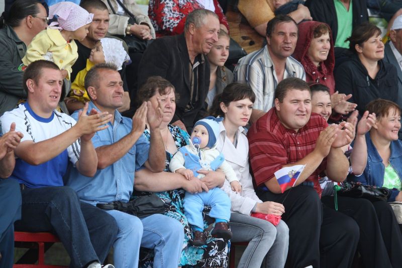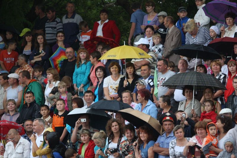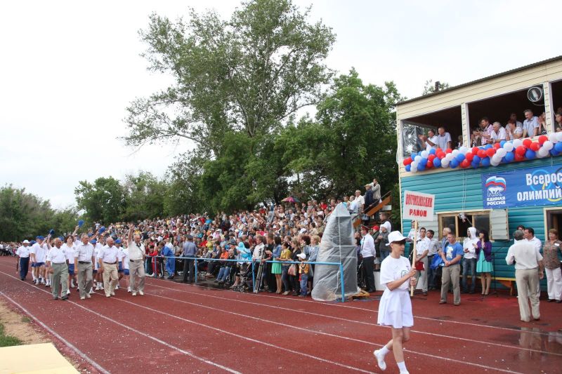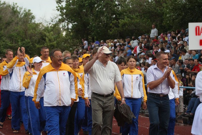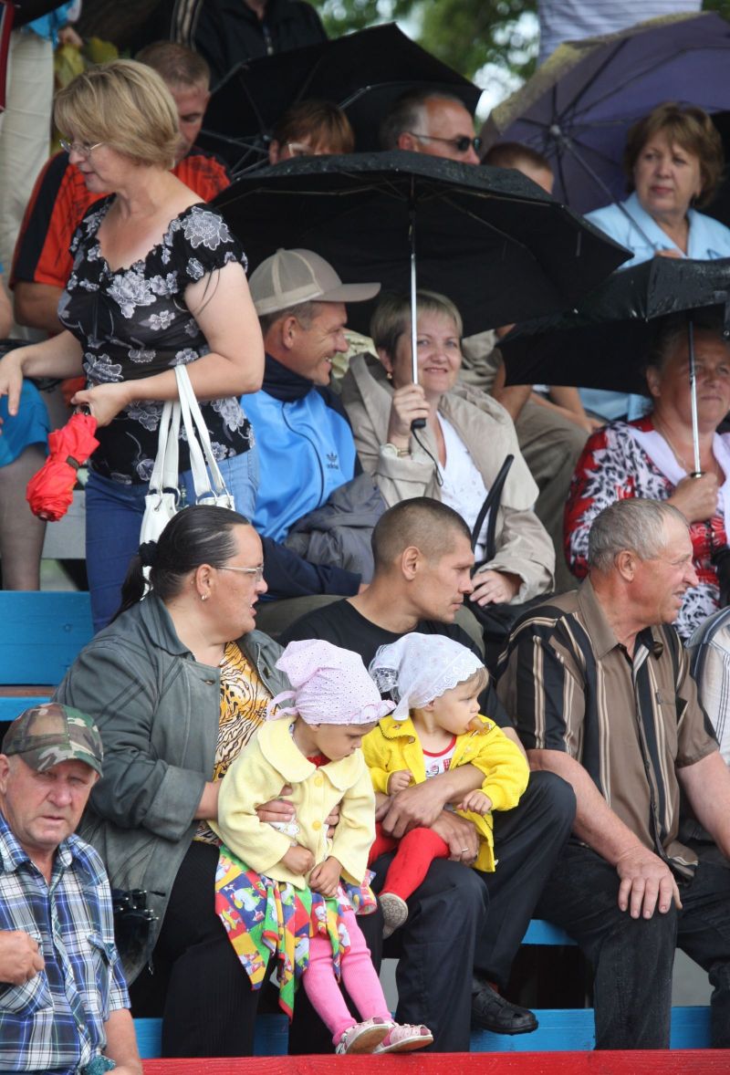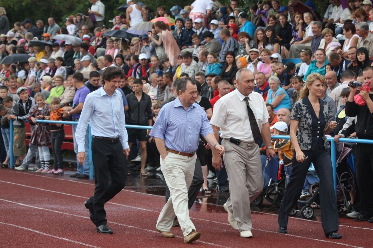 Незадолго до официального открытия сельской олимпиады жара отступила, набежали тучи, помаленьку стало накрапывать. А за полчаса до торжественной церемонии на стадион обрушился ливень. Зрители главной трибуны, ощетинившись зонтиками, терпеливо ждали. Когда небо к началу парада прояснилось и всю округу залило солнцем, мы предложили нашему соседу - местному жителю - перебраться на противоположную трибуну. Но он отказался. Сказал, что хочет поближе увидеть почётных гостей. Волчиха впервые принимала сельскую олимпиаду и вообще мероприятиями крупного масштаба не избалована.