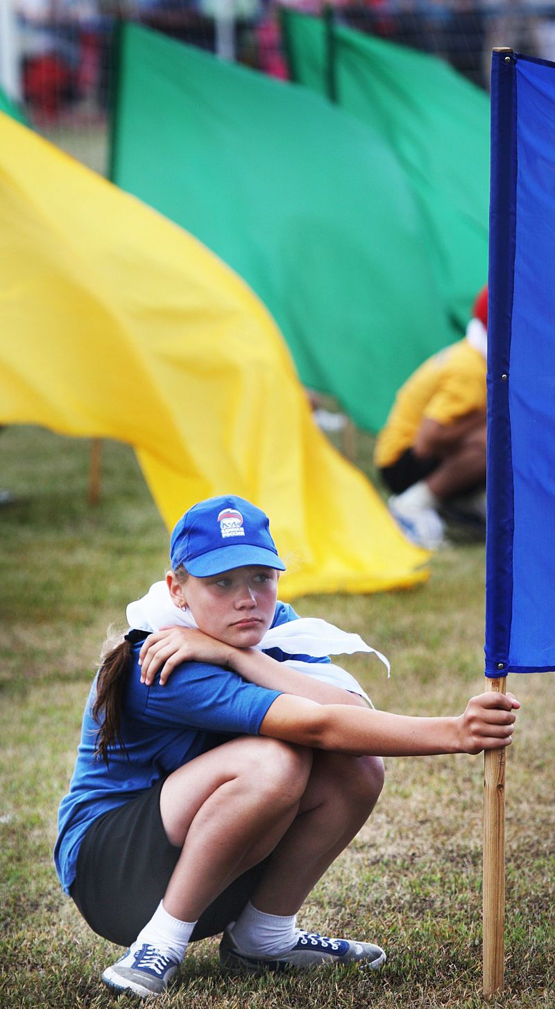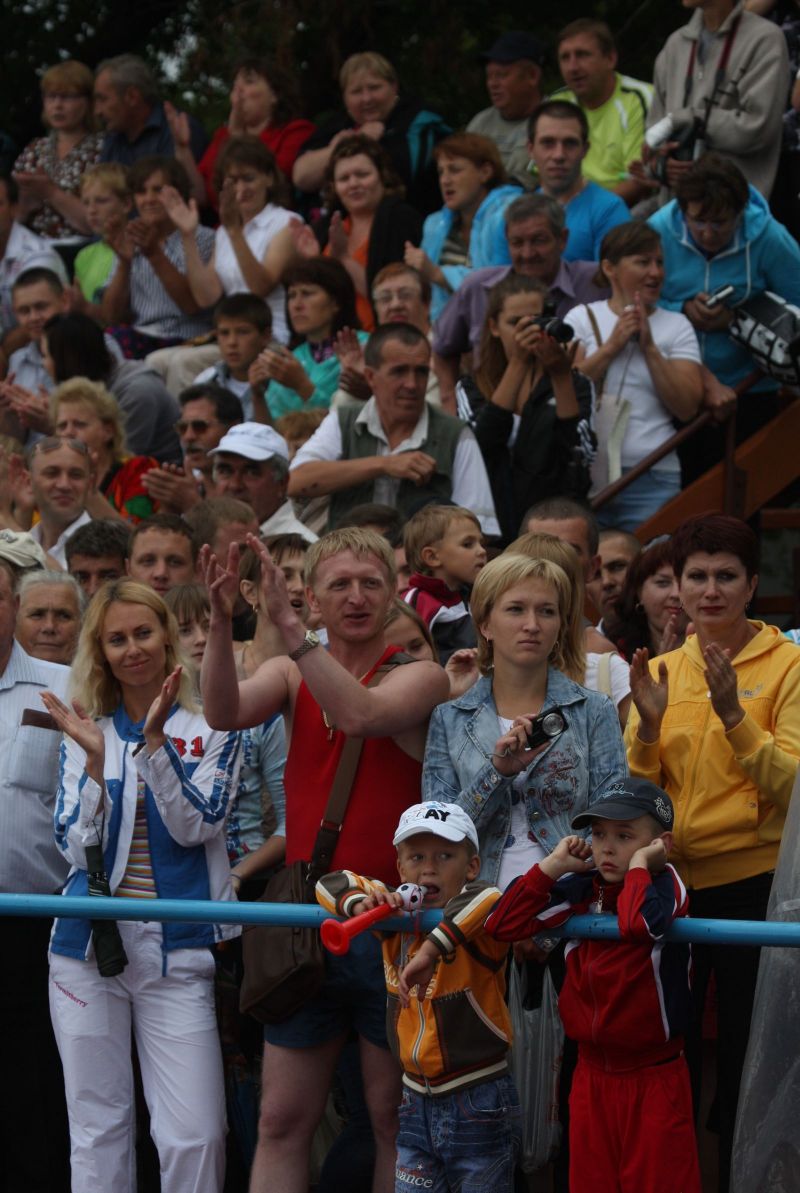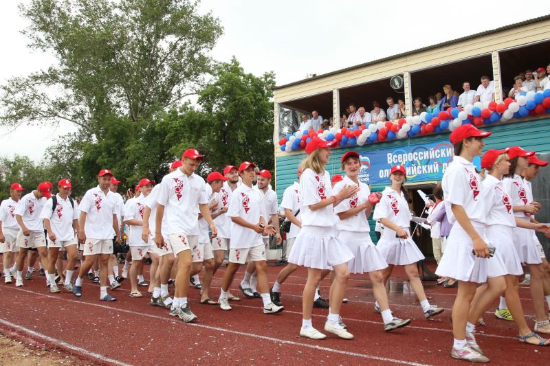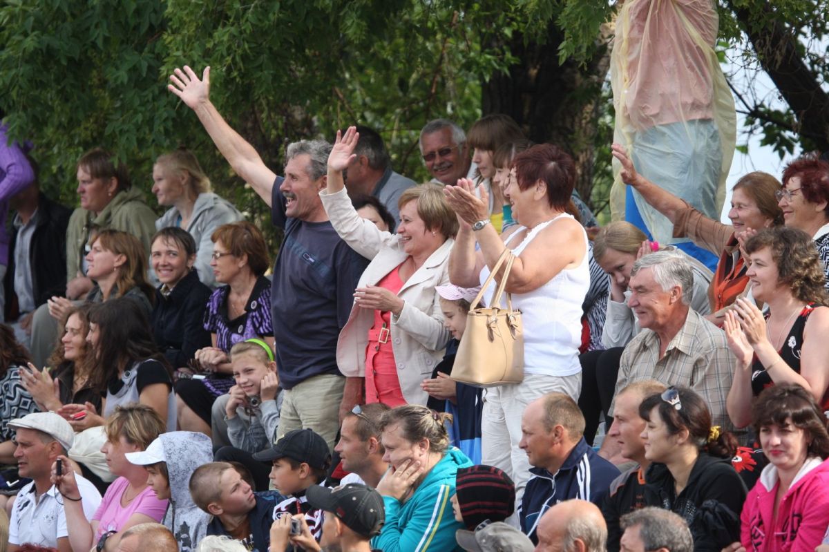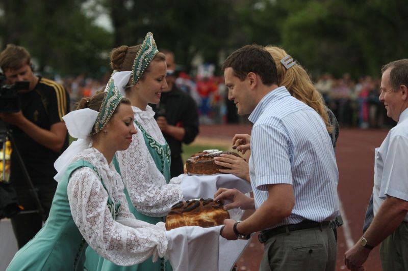 Незадолго до официального открытия сельской олимпиады жара отступила, набежали тучи, помаленьку стало накрапывать. А за полчаса до торжественной церемонии на стадион обрушился ливень. Зрители главной трибуны, ощетинившись зонтиками, терпеливо ждали. Когда небо к началу парада прояснилось и всю округу залило солнцем, мы предложили нашему соседу - местному жителю - перебраться на противоположную трибуну. Но он отказался. Сказал, что хочет поближе увидеть почётных гостей. Волчиха впервые принимала сельскую олимпиаду и вообще мероприятиями крупного масштаба не избалована.