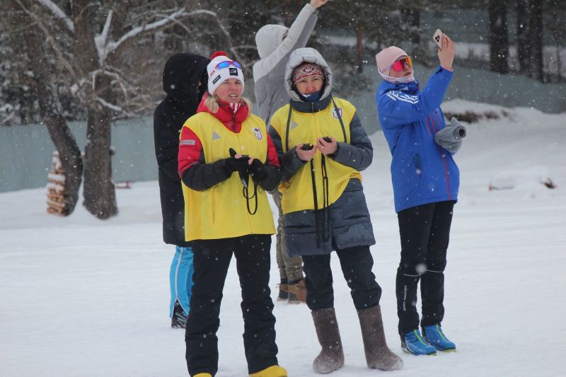 Интригу эстафеты на первом этапе закрутила Екатерина Копырина из Мамонтовского района, чемпионка нынешней олимпиады в индивидуальной гонке и серебряный призёр в спринтерской: она единственной из всех участниц стартового отрезка не допустила ни единого промаха и передала эстафету первой с отрывом от ближайшей преследовательницы из Бийского района в 43,9 секунды. Однако на вершине мамонтовцы продержались недолго. Уже на втором этапе лидерство захватили бийчане, и с каждым этапом только наращивали своё преимущество: на финише их отрыв от серебряных призёров составил почти четыре минуты!