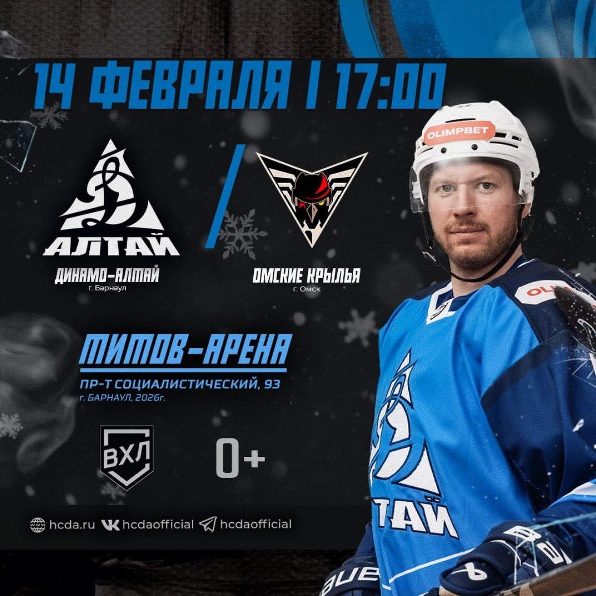 14 февраля. Барнаул. «Титов Арена». OLIMPBET Чемпионат России - ВХЛ. «Динамо-Алтай» - «Омские Крылья»
