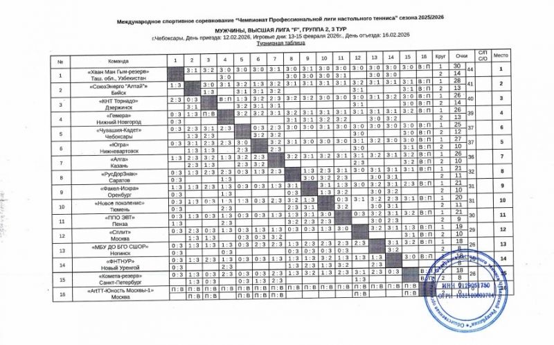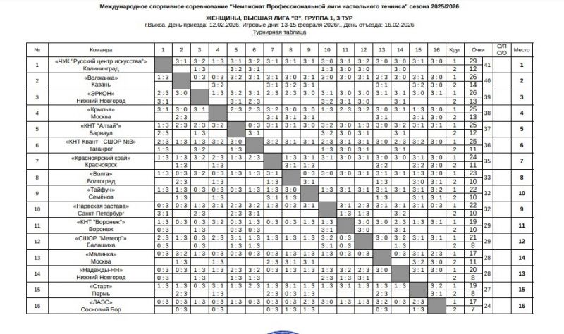 С 17 по 20 февраля в Оренбурге в Центре настольного тенниса России прошёл третий общий тур Чемпионата Профессиональной лиги настольного тенниса (ПЛНТ) сезона 2025/2026 в высшем дивизионе - Премьер-лиге.