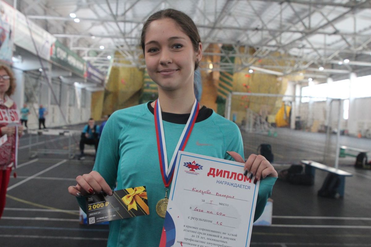 На прошедших краевых соревнованиях Наталья Михайловна выделила выступление спортсмена барнаульской СШОР-2 Дениса Гришкова, который выиграл бег с барьерами на 60 метров с результатом 8,2 секунды. В свою очередь отметим, что сразу на трёх дистанциях - 600, 800 и 1500 метров - победительницей турнира стала Полина Гладышева из барнаульской СШОР-2, которой очень серьёзную конкуренцию составила Софья Хавкуноваиз Славгорода - в беге на 600 метров соперниц разделила одна сотая секунды, а на 800 метров - две сотые.