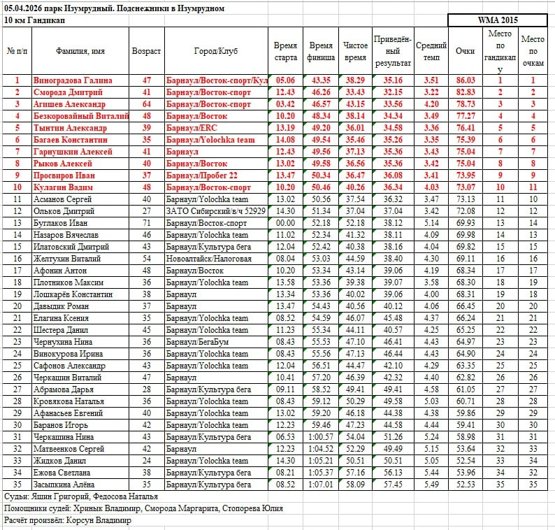 Все результаты соревнований «Подснежники в «Изумрудном» в прикреплённых ниже файлах.