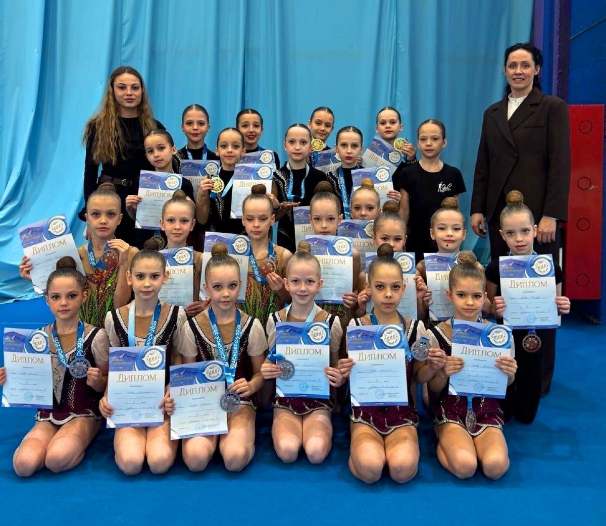 На первенстве Сибири представительницы Алтайского края завоевали две бронзовые медали: команда «Элион» стала третьей среди спортсменок 10−12 лет, а команда «Ариэль» забралась на третью ступень пьедестала среди гимнасток 14−16 лет.