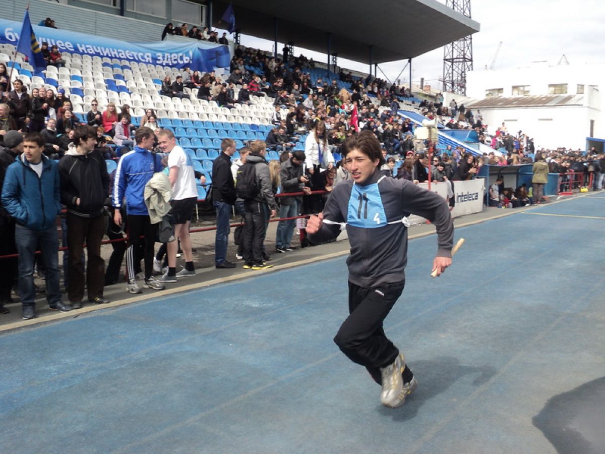 20 мая несколько сотен студентов классического университета заняли Северную трибуну стадиона «Динамо». В этот день здесь прошли заключительные соревнования cпартакиады, посвящённой 40-летию АлтГУ, - легкоатлетические забеги и товарищеский матч между студентами и преподавателями вуза.