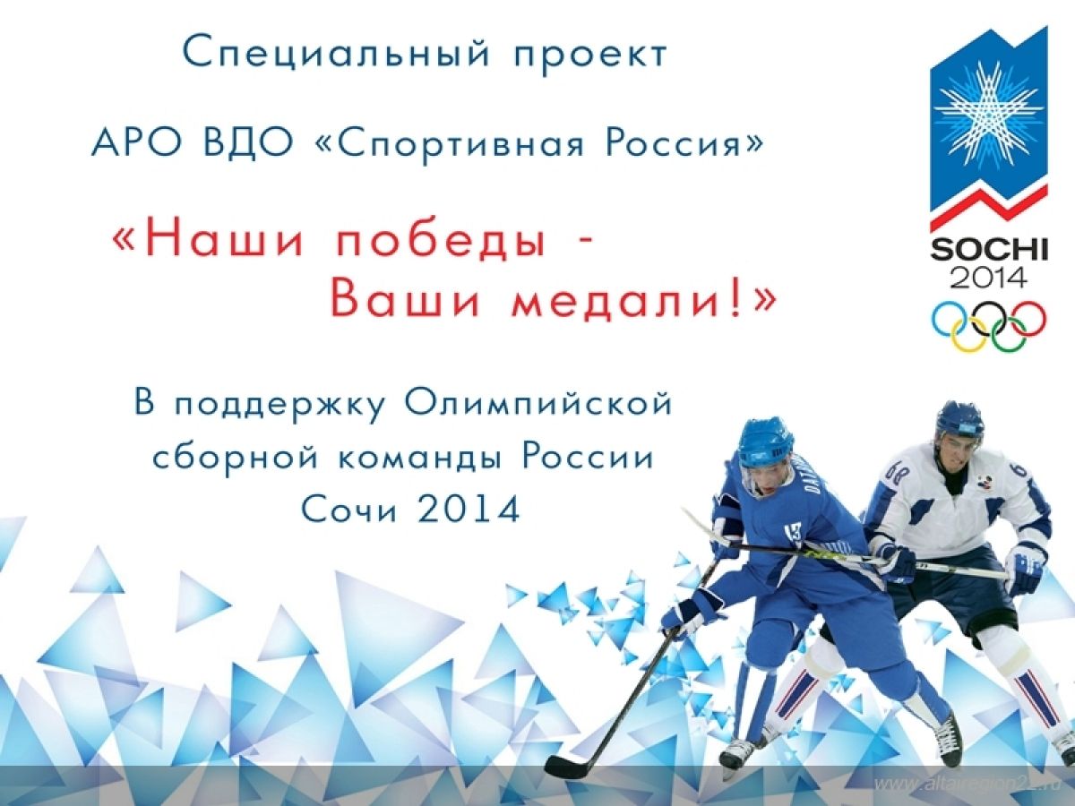 Он посвящен олимпийской и паралимпийской сборным командам России в Сочи-2014. Чтобы поддержать наших спортсменов, Алтайское региональное отделение Всероссийского добровольного общества «Спортивная Россия» и фотограф Андрей Синегубов впервые в Рубцовске проводят выставку спортивной фотографии под девизом «Наши победы - Ваши медали!» - рассказал заместитель руководителя АРО ВДО «Спортивная Россия», член Общественного совета по физической культуре и спорту при Губернаторе Алтайского края Евгений Рубахин.