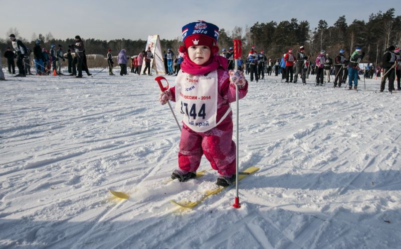 Главный старт этих соревнований в Алтайском крае прошёл 9 февраля на лыжной базе «Стройгаз». На старт вышло более трех с половиной тысяч участников, разделённых на три группы. Сначала пятикилометровую дистанцию пробежали юноши и девушки 1996−2002 гг. Затем состоялся забег юных любителей лыжного спорта 2003 года рождения и младше, семей, а также участников с ограниченными возможностями. Все они прошли специальную дистанцию в 2014 метров. Наконец, участники 1995 года рождения и старше пробежали 10 километров.