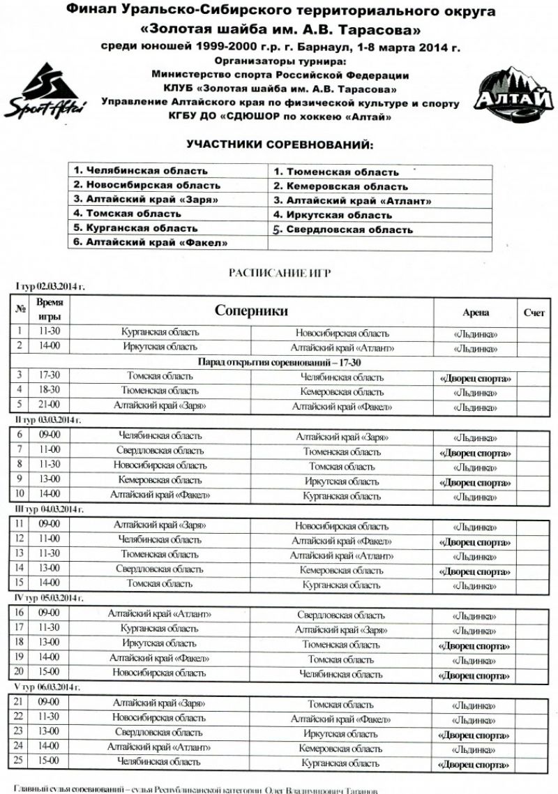 Расписание турнира в прикреплённом ниже файле.