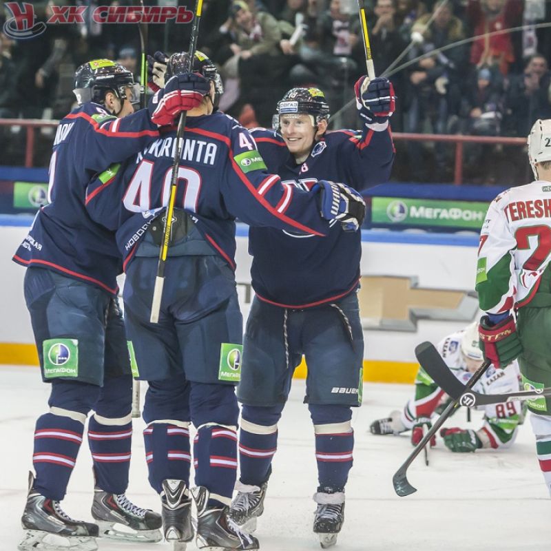 В ЛДС «Сибирь» мы пошли окольным путем - завернув в расположенную через дорогу закусочную. Надо было подкрепиться и послушать местных болельщиков. Половина посетителей закусочной щеголяли в игровых свитерах «Сибири» разных лет и расцветок, шарфиках, шапочках или бейсболках с эмблемой клуба, живо напоминающей о знаменитом «Монреаль Канадиенс». Слушайте, может, «Сибири» породниться с «канадцами»? Болельщики смеются: «А что, оба города - миллионщики, климат схожий, не Канары». — «Монреаль - культурная столица Канады, Новосибирск - Сибири, - подначиваю я. — Подпишем с „Канадиенс“ договор о сотрудничестве, игроками начнем меняться. Мы им Губина с Шумаковым, они нам Галюченюка с Пачиоретти. Галюченюк по-русски отлично говорит, а у Пачиоретти жена из России. Мы им Коскинена, а взамен - олимпийского чемпиона Сочи Прайса». — «Не-е-ет, - предостерегающе качает пальцем один из новых знакомых. — „Миху“ мы ни на кого не променяем!». Двухметровый вратарь Микко Коскинен - один из лидеров «Сибири», любимец болельщиков. Они часто скандируют фамилию легионера из Суоми. Вообще, по мнению собеседников, с финской диаспорой «Сибири» несказанно повезло - Коскинен, Лехтеря, Энлунд, Коскиранта честно отрабатывают свои контракты. Повезло и с двумя новичками - Кугрышевым и Моней, которых клуб получил после обмена с ЦСКА, куда уехал защитник Зайцев. «Селекция хорошая! — рассуждает о причинах удачной игры „Сибири“ самый молодой из сидящих за столом. — А главный тренер! Сидели сейчас и говорили, что Квартальнову можно скоро сборную давать. Он бы и в Сочи лучше сработал, чем Билялетдинов. По крайне мере, Дмитрий Вячеславович всегда может встряхнуть команду и направить ее игру в нужное русло. Квартальнов умеет общаться с игроками, он всегда вместе с командой». Смотрим в пустые пластиковые кружки, на часы - пора закругляться и выдвигаться во дворец. Интересуюсь напоследок прогнозами на матч. Троица отвечает как один: «Победим!».