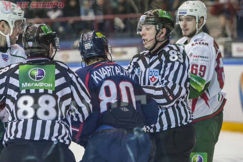 Самым волнительным оказался третий период. Главный вопрос, о победителе, был снят очень быстро, когда гости довели счет до 5:1, однако болельщики все равно переживали за своих. А когда казанцы опять начали грубить, зал вообще завелся. Больше всего досталось Илье Никулину, устраивавшему затяжные дискуссии с судьями и за что-то регулярно тюкавшему «маленького» - Никиту Квартальнова, 20-летнего сына главного тренера. Никулину припомнили все: и его «вклад» в фиаско сборной на Олимпиаде в Сочи, съемки в рекламных роликах и даже какие-то татуировки (ну все знают болельщики). Илья получал шайбу, и зал гудел, как пчелиный рой, у которого крадут улей с медом. Раздражение публики и хоккеистов росло с каждой минутой и закончилось оно вполне по-мужски: дракой Квартальнова-младшего с Александром Бурмистровым. Новосибирский паренек не посмотрел, что Бурмистров постарше его и покрепче, что оппонент прошел суровую закалку заокеанским хоккеем. Никита просто вцепился, как волчонок, в пижонистого «барса» и быстро свалил его на лед. Судьи с трудом угомонили драчунов. Никиту удалили до конца матча (на следующий день еще и дисквалификацию влепят, и штраф), но удаль молодого Квартальнова взбодрила партнеров. В концовке безнадежно проигранного матча они забили гостям два гола.
