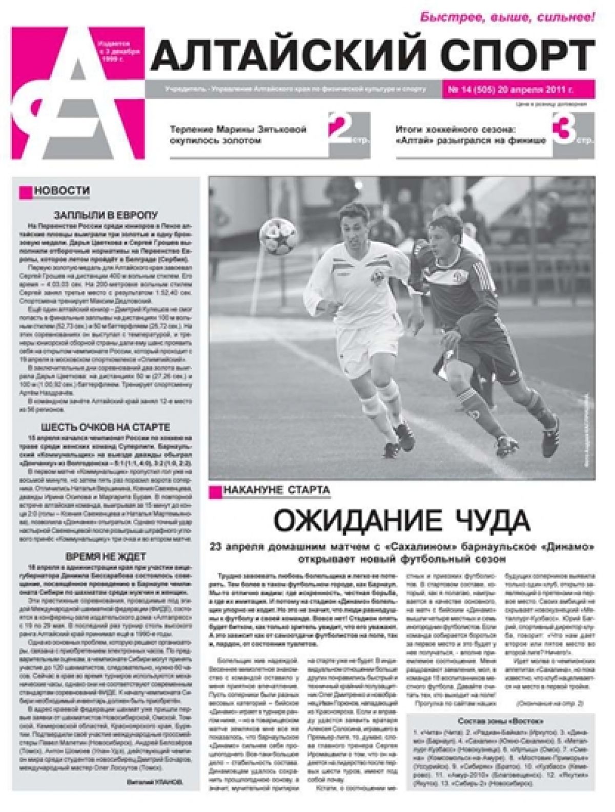 • Ожидание чуда. 23 апреля домашним матчем с «Сахалином» барнаульское «Динамо» открывает новый футбольный сезон.