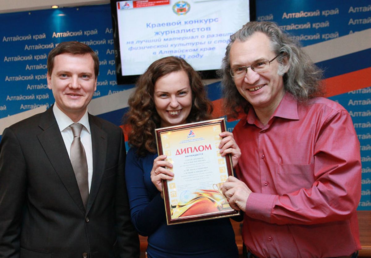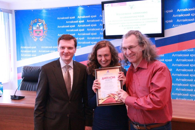 В краевом управлении по печати и информации 22 апреля наградили лауреатов конкурса журналистов на лучший материал о развитии физической культуры и спорта в Алтайском крае в 2013 году