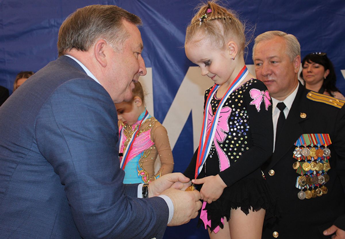 - На сегодняшний день на Алтае художественной гимнастикой занимается около 2000 девочек, - отметил он. — Из краевого бюджета на участие и проведение соревнований ежегодно выделяется более 2 миллионов рублей. Радостно видеть таких красивых и грациозных детей.Александра Богдановича попросили вручить медали самым маленьким победительницам. Многие из них, в силу роста и возраста, даже не могли забраться на пьедестал. Пока губернатор брал их на руки и подсаживал, некоторые дети успевали спросить: «А как тебя зовут?» или, например, «А эта медаль из чего?». От этих ярких, очаровательных звездочек гостям передавалась невероятная энергетика. Даже строгий (должность обязывает) генерал-майор Андрей Муравьев, председатель краевого совета «Динамо», руководитель УФСБ по Алтайскому краю, улыбался: