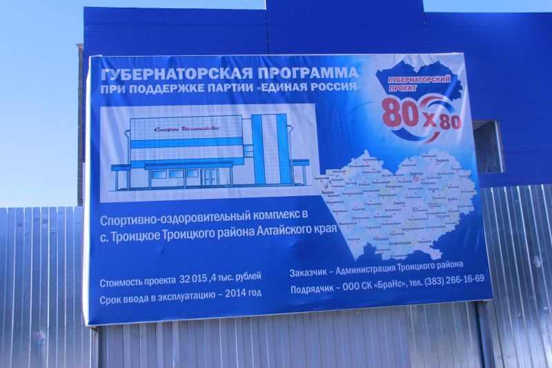 Если в рамках краевой программы «75×75» в сельских районах было введено в эксплуатацию четыре современных спорткомплекса, то по аналогичной программе «80×80» до 2017 года на селе должно появиться ещё семь подобных спортивных объектов - в Благовещенском, Змеиногорском, Кытмановском, Панкрушихинском, Третьяковском, Троицком и Тюменцевском районах.