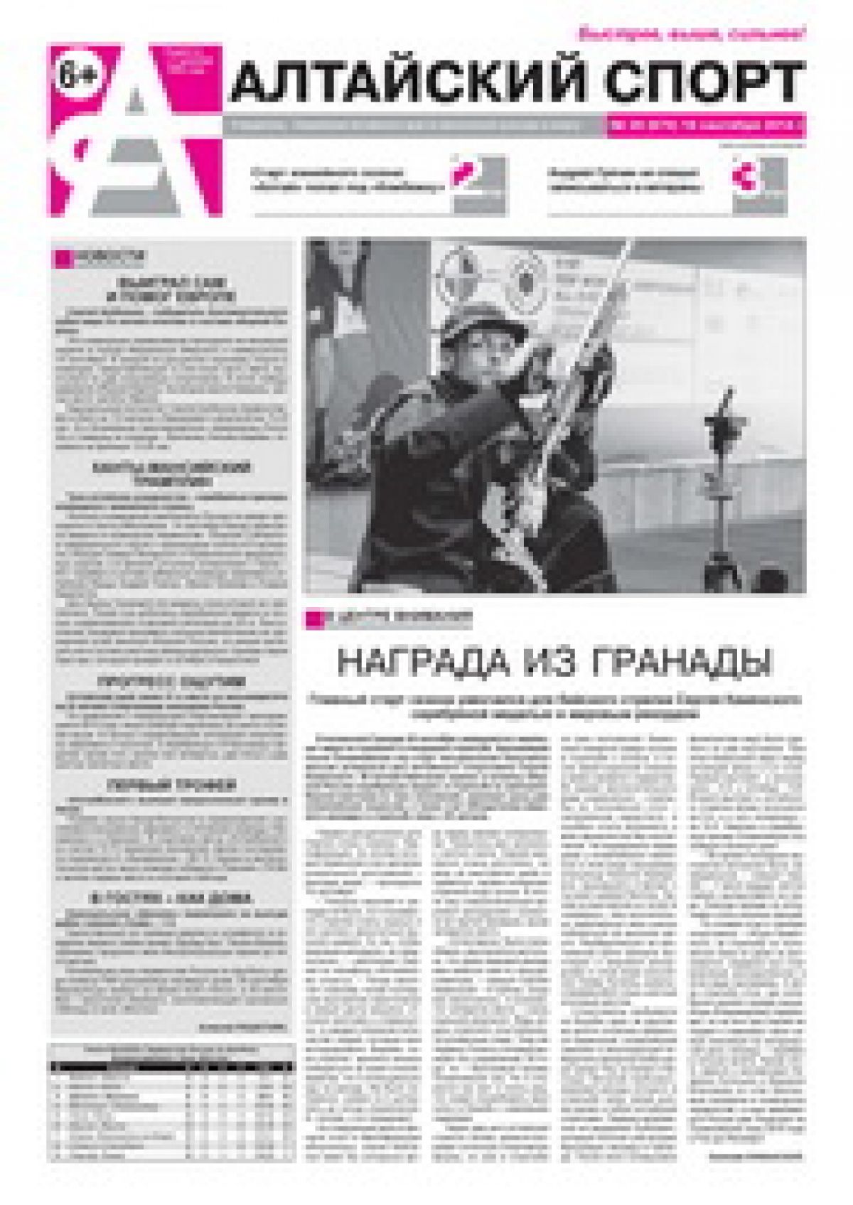 - Награда из Гранады. Главный старт сезона увенчался для бийского стрелка Сергея Каменского серебряной медалью и мировым рекордом.