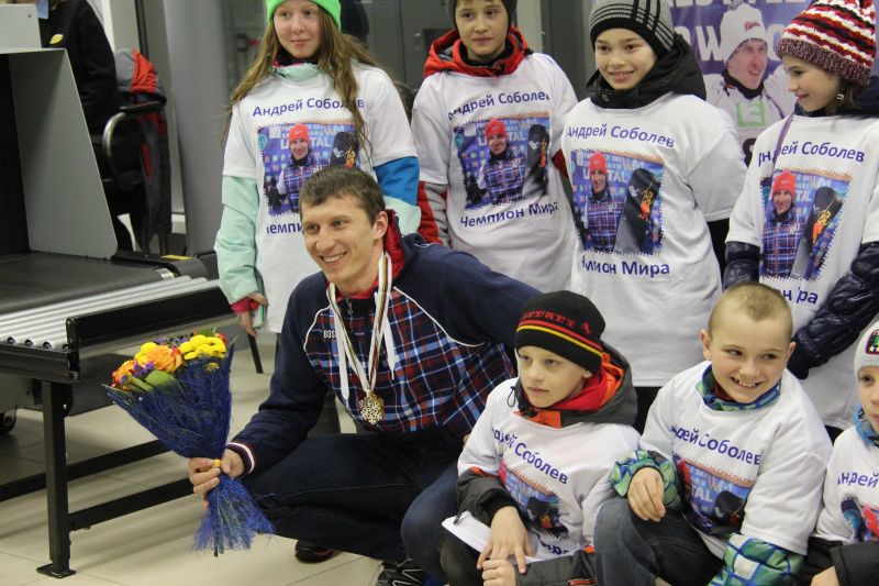 Алтайский спортсмен прилетел в Барнаул рано утром 10 февраля. В аэропорту его встречали десятки людей: юные сноубордисты белокурихинского отделения СДЮШОР «Горные лыжи», тренеры, журналисты. И такое внимание не удивительно. Ведь Андрей - первый за всю историю россиянин, получивший титул чемпиона мира по этому олимпийскому виду спорта.