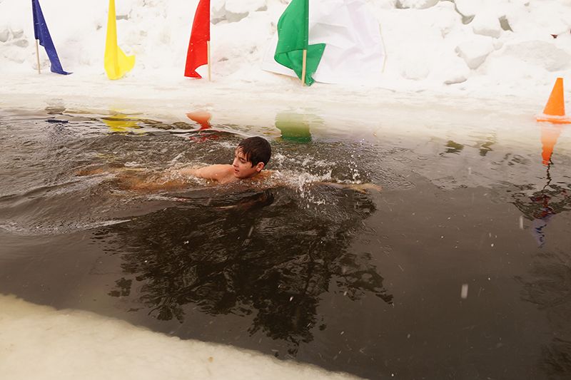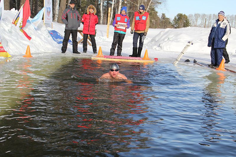 В общей сложности 34 пловца, в том числе 10 женщин, проплыли за сутки 53 км ровно. Каждый из спортсменов заходил в воду за 24 часа от четырех до пяти раз. Её температура при этом составляла + 1 °C.Эстафетный заплыв открыл 88-летний ветеран Великой Отечественной войны Анатолий Маркелович Третьяков из Первомайского района. Он разрезал красную ленточку перед прорубью и дал старт первому участнику - организатору и руководителю заплыва Александру Зеленецкому, который преодолел первые 25 метров с российским флагом.