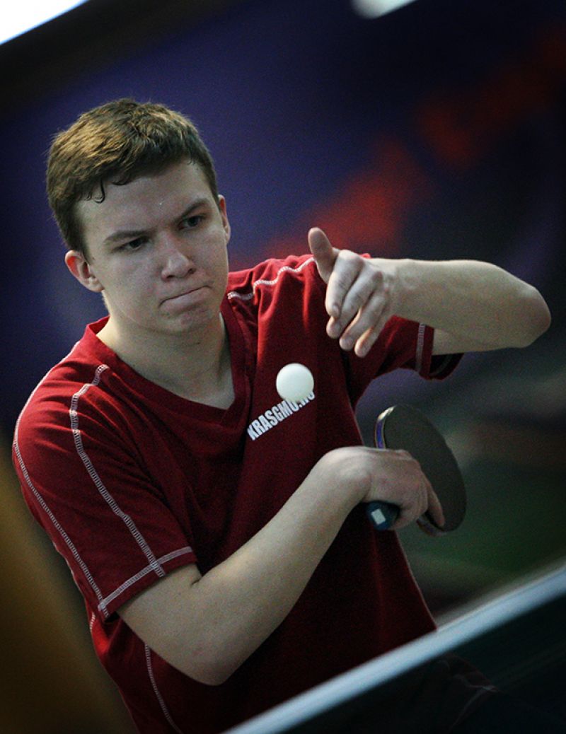 Параллельно в корпусе шли соревнования по настольному теннису. Тренер из Красноярска Иван Волонтинас даёт последние наставления подопечным.