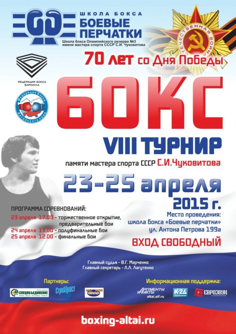 23−25 апреля. Барнаул. Школа бокса «Боевые перчатки». VIII традиционный турнир памяти призёра абсолютного первенства СССР Сергея Чуковитова.