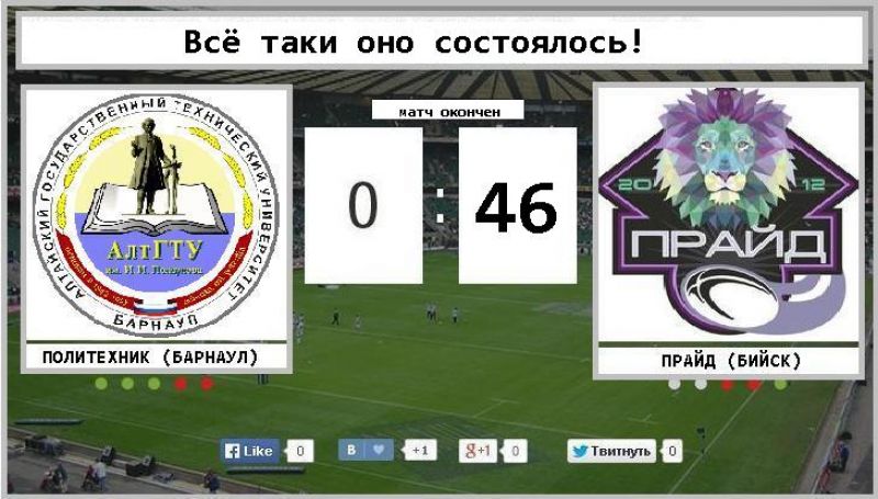 Сезон 31 марта на новоалтайском стадионе «50 лет Алтаю» открывали два местных клуба, заявившихся в этот дивизион, - барнаульский «Политехник» и бийский «Прайд». Победу в алтайском дерби одержали бийчане со счетом 46:0. Это удалось им ввиду накопленного опыта, так как большинство из игроков бийской команды в предыдущие три сезона играли в составе РК «Ирбис» (Барнаул).