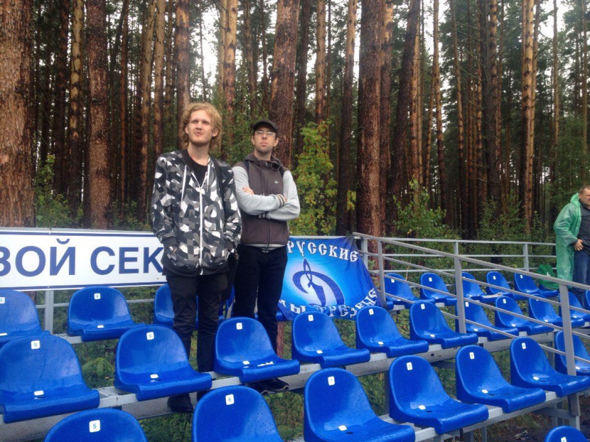 По дороге меня обуревали подозрения, что даже число «50», которое обычно значится в протоколах домашних матчей томичей, здорово преувеличено. Вот стали бы вы ехать в условный Павловск, чтобы посмотреть на игру динамовской молодежки? А местные болельщики приехали - и их действительно было около полусотни. Любят же в Томске свою команду! Хотя, может, не в «Томи» дело? Пара пожилых болельщиков неподалеку от нас неспешно нарезала колбасу, разливая по пластиковым стаканчикам что-то подозрительно прозрачное…