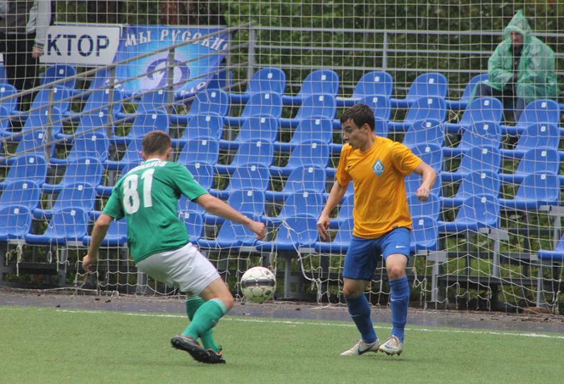 Вот, наконец, появляется судейская бригада. Игра началась. Но при этом никак не желает восприниматься сознанием как матч профессиональных футбольных команд. Лес вокруг, минимум болельщиков, поле, явно меньше стандартного - все это производит впечатление двусторонки на тренировочных сборах. Наверное, и у гостевых команд возникают подобные ассоциации - потому-то «Томь-2» и идет пока без поражений.
