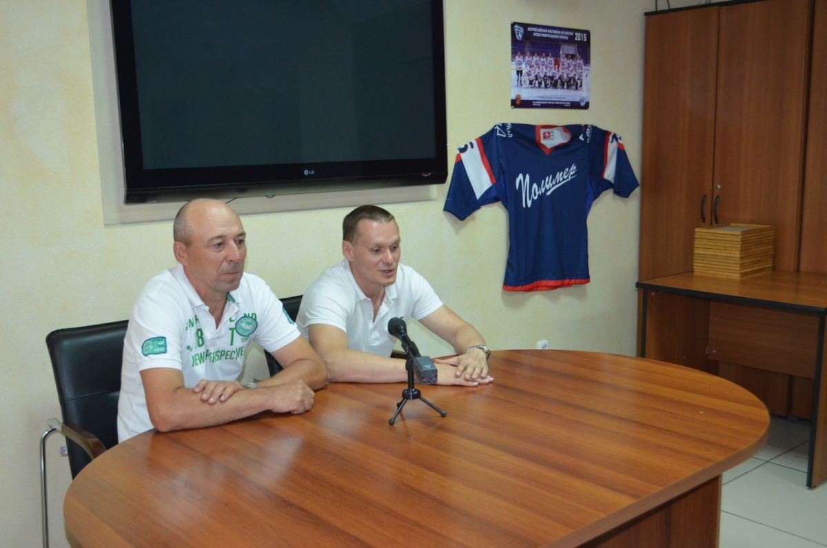В свою очередь, капитан «Полимера» Михаил Шадрин вручил Щербакову плакат команды с подписями игроков. На пресс-конференции выступил тренер команды «Полимер» Сергей Иванович Акимов. Он подчеркнул, что команда готовилась в сложных и трудных условиях, в Барнауле не было льда перед началом соревнований. Сергей Иванович поблагодарил администрацию Алтайского края, управление по физической культуре и спорту. Также он представил двух новых игроков команды: Лоскутова Вадима и Ширяева Олега, которым вручил майки «Полимер».